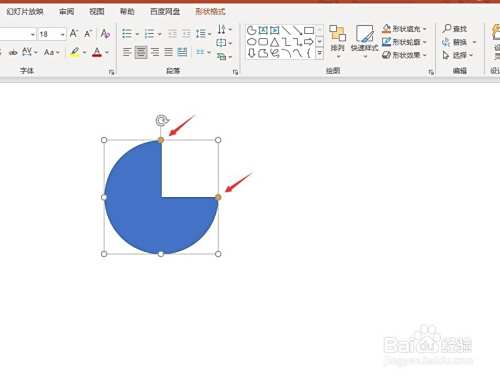 现在图上有两个黄色浮点,点击它可以变形。我们拖动左边这一点,顺时针旋转一个角度,就得到一个扇形。