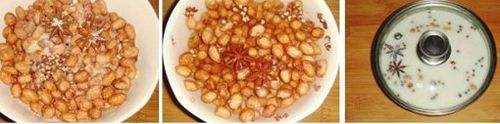 7把浸泡入味的花生用滤网捞出,把花椒大料粒捡出;