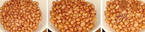 2在清洗干净的花生仁上放2颗大料、50粒花椒;