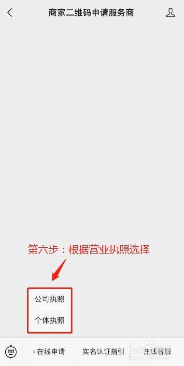 第六步:点击 公众号底部菜单“在线申请”根据营业执照选择填写