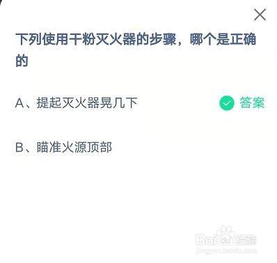 蚂蚁庄园每日一题:下列使用干粉灭火器的步骤,哪个是正确的?一起看答案。