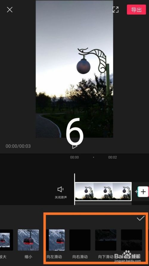 在入场动画列表中,“向左滑动、向右滑动、向上滑动、向下滑动”都是可以使照片产生平移的效果,根据需要进行选择即可。