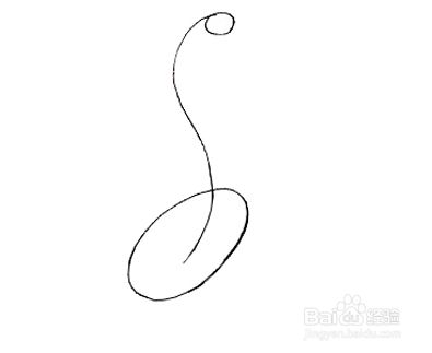 首先画一个长椭圆形,这将是身体。画一个长弯曲的线与一个小椭圆,这将是颈部和头部。