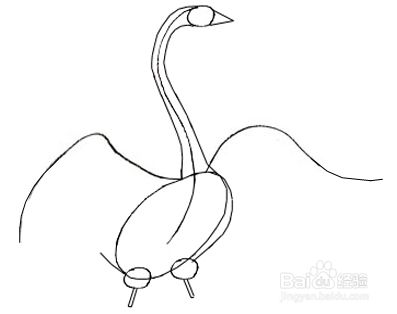 为大椭圆形两侧翅膀添加拱形线条。然后在天鹅的肚子下面画两个小圆圈,