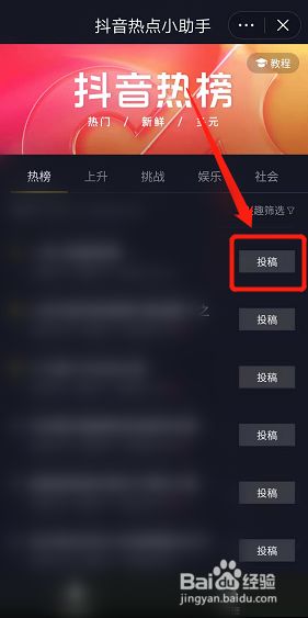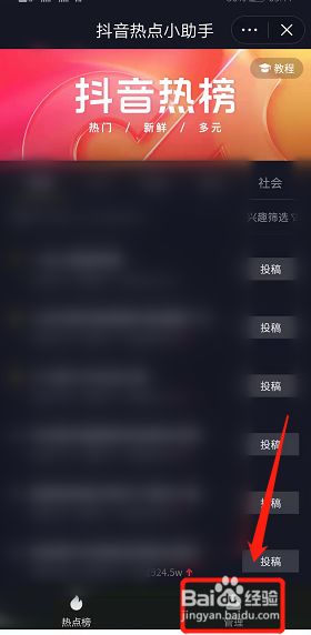 打开之后,在抖音热点小助手页面,点击投稿,发布作品时即可关联热点。