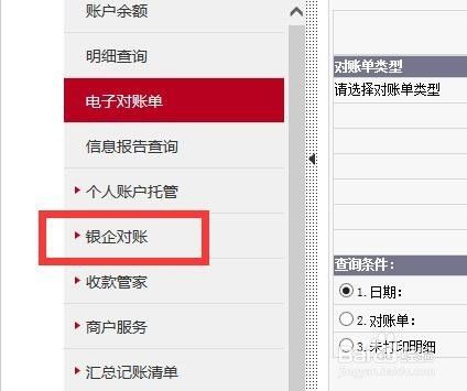如果没有开通企银对账,需要先开通才行,选择开通企银对账,已经开通的,直接选择企银对账