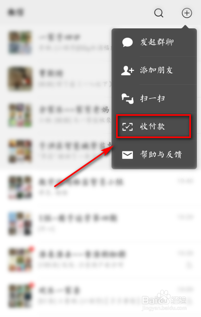 在微信的主界面,右上角找到小加号+,点击打开,如图