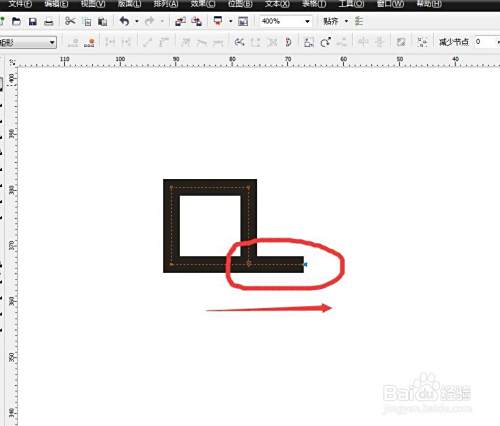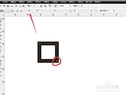 用形状工具,选择正方形右下角的一个节点,然后在属性栏中找到断开节点这个功能,点击一下