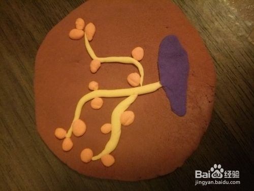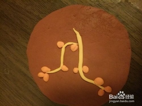 再用黄色的搓成条形贴在上面作为树枝。如图