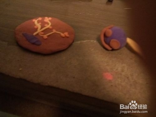 然后用紫色的粘土在下面贴一块表示泥土,一个简单的陶艺垫杯做好了。如图