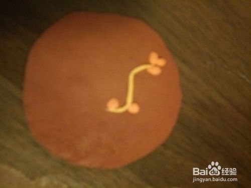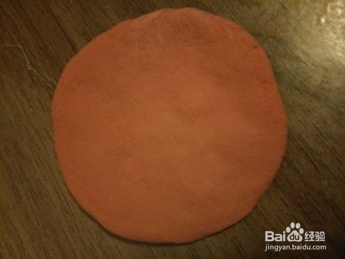 去咖啡色的粘土揉成圆形,然后用手压平。