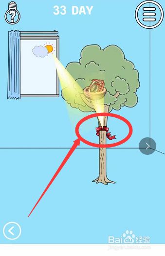 再将刚获得的道具放在树上,如下图,卷带会缠到树上,也射出一道光,会将鸟赶走