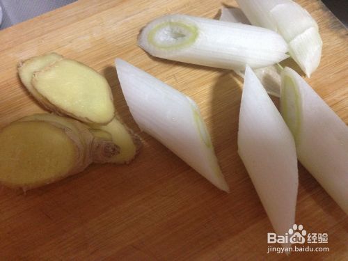 准备葱段适量,姜片七八片左右,八角2个,备用。