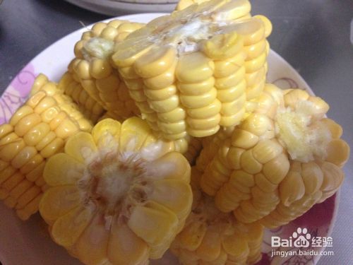 其次,将玉米皮和须清理干净,在清洗后,将两个玉米都切成小段,备用。