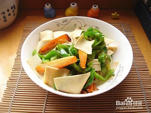 刚刚接到一通电话,是快递。我亲爱的小度wifi已经来到,因为在班上所以只好请楼下邻居帮忙签收了。庆幸自己业余时光找到了爱好——编写营养美食经验,一点点学习,一点点积累,希望自己能写出优质的经验分享给朋友们。转入正题,炒豆皮所用食材简单,制作过程快手,口感清新素雅,不失为一道家常人见人爱的菜肴,胡萝卜明目,青椒补铁,豆皮营养和口感也都不错,适合上班一族制作。