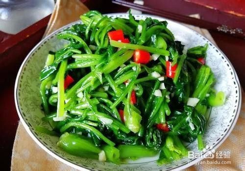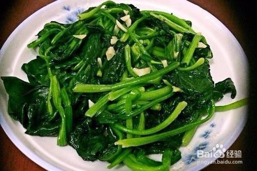 清炒菠菜,可以切点蒜和姜,用植物油更好。