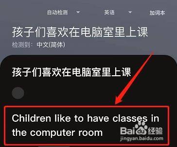 最后即可在页面中看到,孩子们喜欢在电脑室里上课的英文为“Children like to have classes in the computer room”