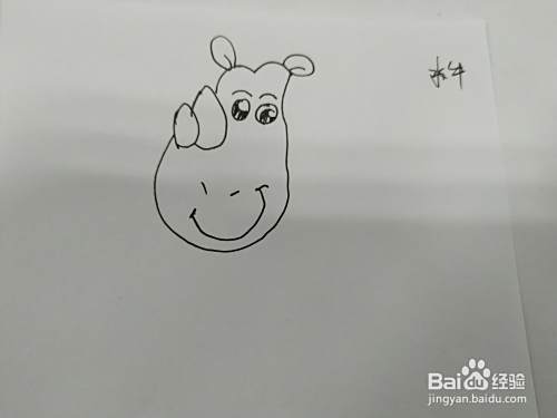 然后我们来画水牛的嘴巴和眼睛。如下图
