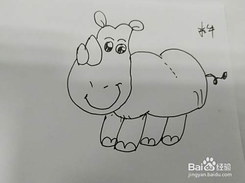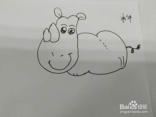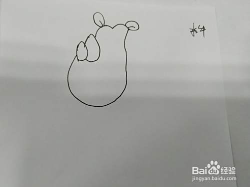 然后我们来画水牛的身体轮廓,还有尾巴。如下图