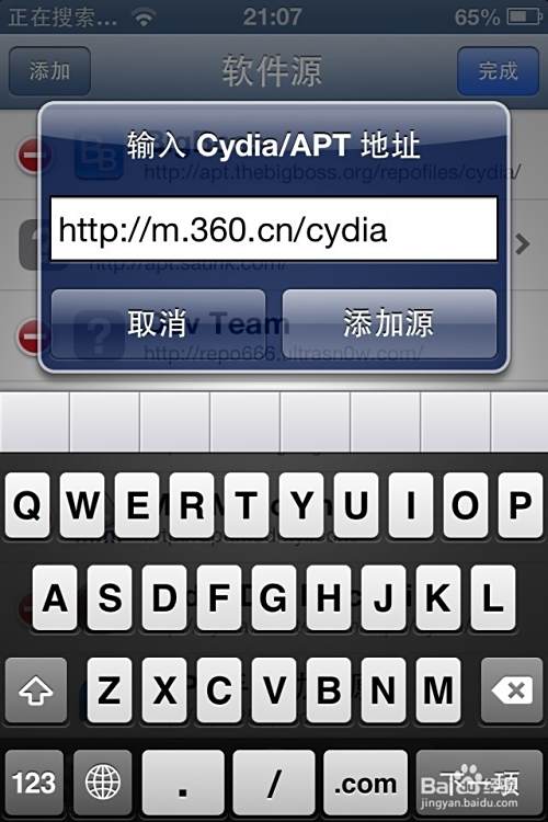 打开Cydia - 管理 - 软件源 - 添加软件源:m.360.cn/cydia: