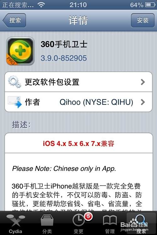 360手机安全卫士已经全部支持iOS7系统,适合国人的习惯,有来电归属,黑名单等N个功能,非常简单应用,下面小编为大家介绍下 360手机卫士越狱版的下载和安装方法: