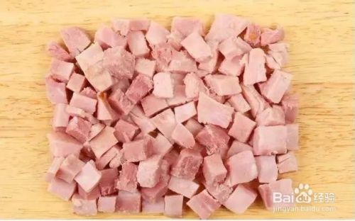 荸荠、熟火腿肉也切成小丁,备用。
