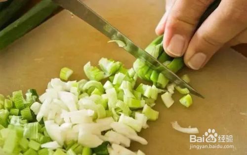 干香菇泡水泡发后,切成香菇丁,放在一旁备用。