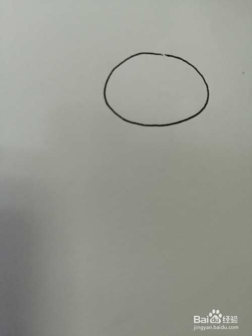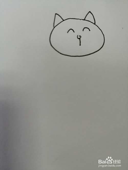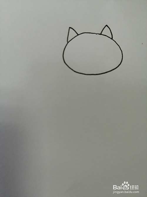 第一步,我们先把可爱的小猫咪的椭圆形的头画出来,注意头上两只小耳朵的画法。