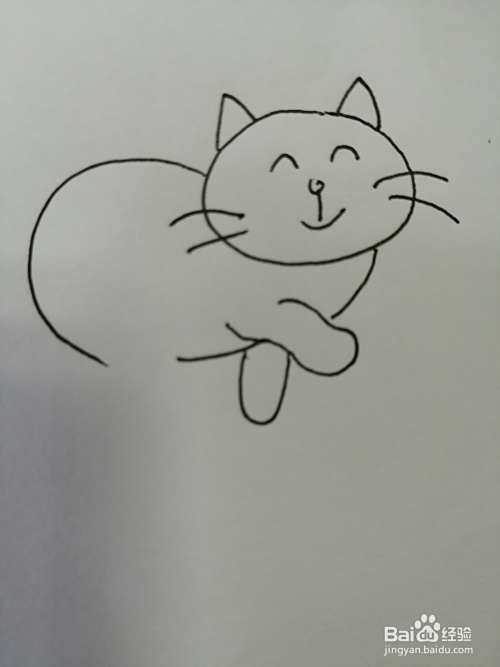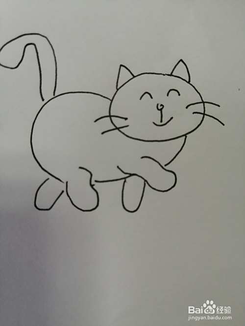 第七步,最后把可爱的小猫咪的小尾巴画完整。可爱的小猫咪就画好了。