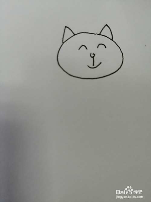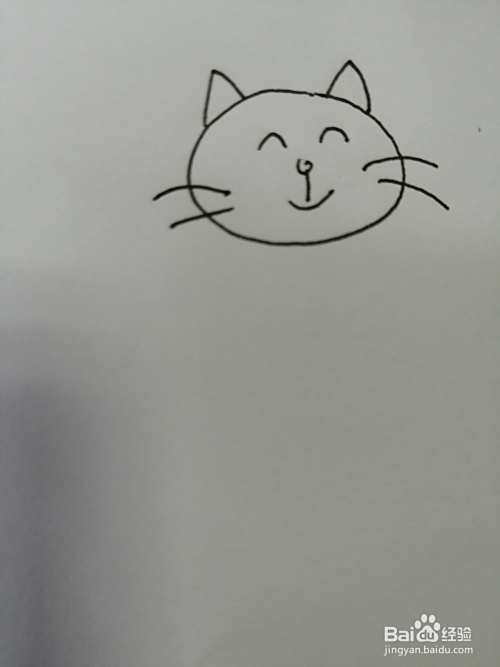 第三步,然后把可爱的小猫咪的鼻子和两边的胡须画出来,胡须画法也比较简单。