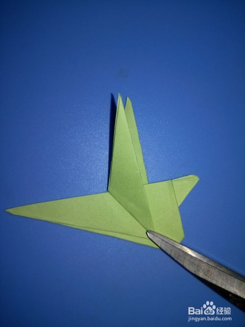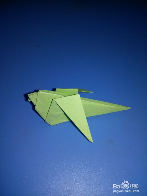 最后把嘴的地方的尖角往中间藏。蝗虫就折好了。
