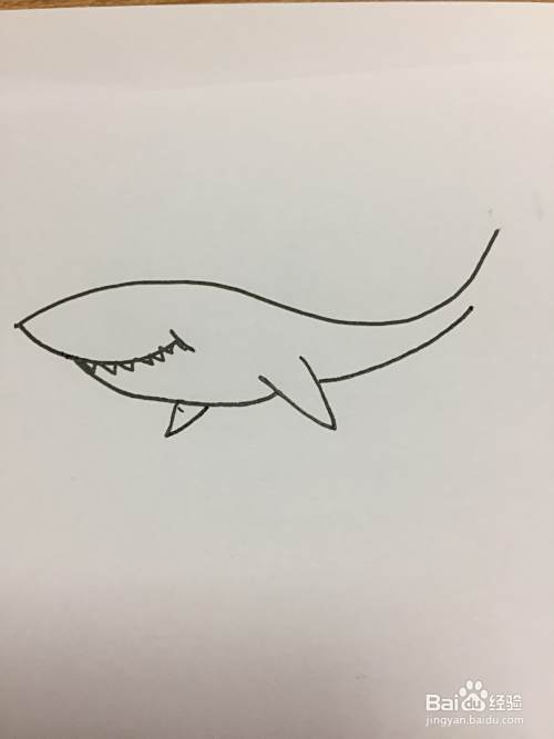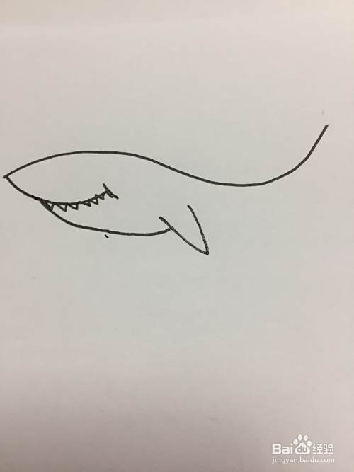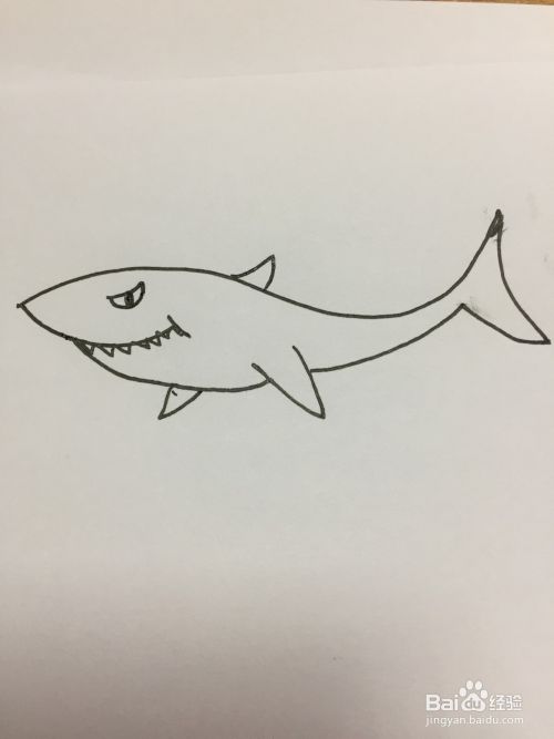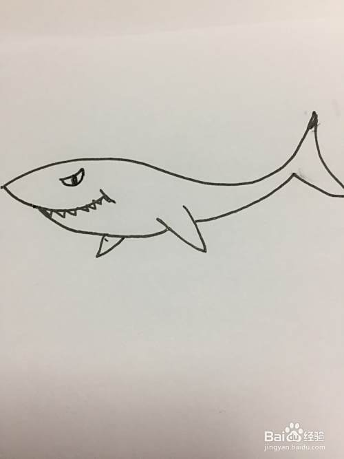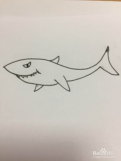 最后在鲨鱼背上画翅,简笔画鲨鱼完成