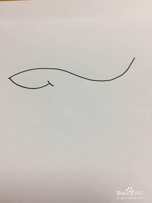 然后在前面画小弧线,勾勒出鲨鱼的嘴巴