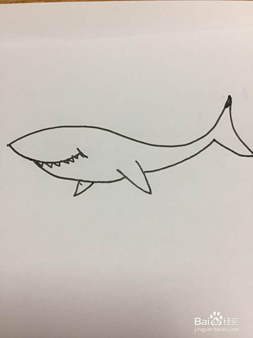 如图,尾巴画好之后,鲨鱼的大致形状已经出来了