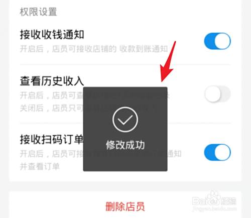 关闭后,会显示修改成功,店员就只能查看当天的收入情况。