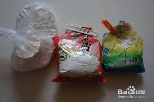 准备好的粉料:老家带来的糯米粉,秋菊牌粘米粉,澄粉;