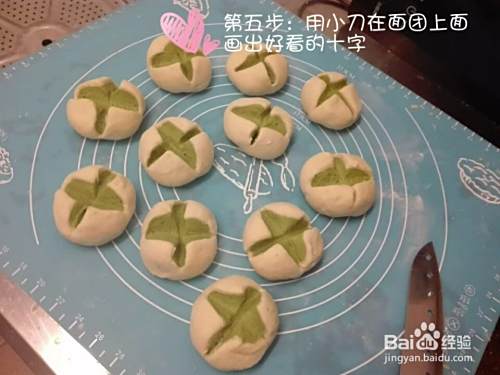 用小刀在面团上划出好看的十字