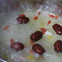 锅里放适量的水,将银耳撕成小朵。去掉根部~尽量撕碎一点,开大火煮开