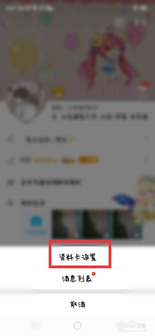 点击 资料卡设置,如图所示