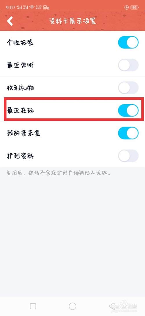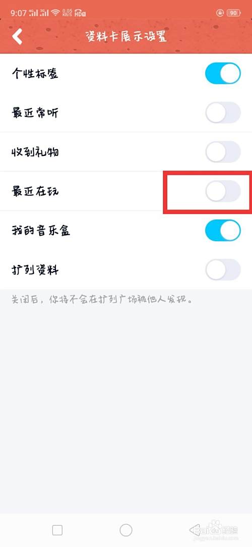 打开资料卡设置中的 资料卡展示设置,然后关闭最近在玩就可以了
