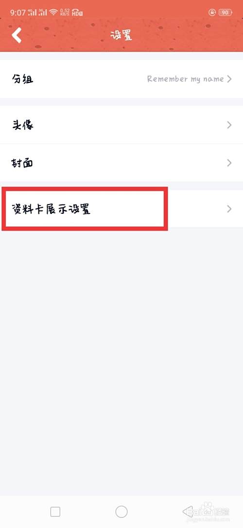 再点击 资料卡展示设置,如图所示