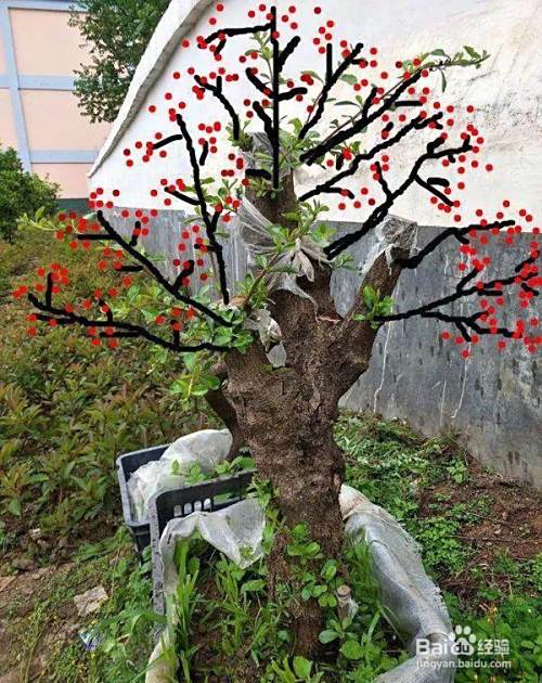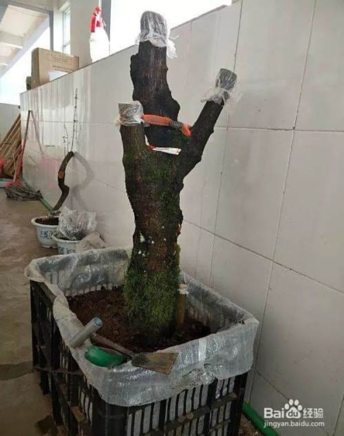 对于枝干的截面,我先是用红霉素涂抹,然后再用农业上常用的塑料薄膜把截面扎好,这两样很重要,红霉素可以消毒杀菌,薄膜封口可防止树桩水分的流失。