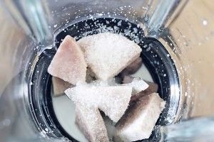 芋头蒸透,用筷子可以轻松扎洞的程度,与细砂糖、牛奶、玉米油、泡打粉一同放入搅拌机搅成细腻的泥。因为芋头水分含量不同,牛奶可以不一次加完,搅到酸奶状的泥就可以了,勺子舀起来流速很缓慢。