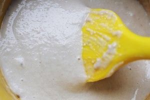 鸡蛋打散,再加入芋泥混合均匀。将面糊装入裱花袋。