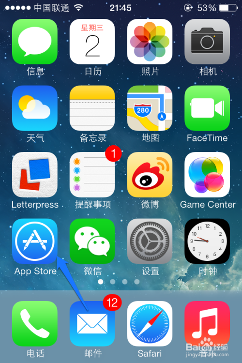 在 iPhone 主屏上找到“App Store”图标,点击打开,如图所示