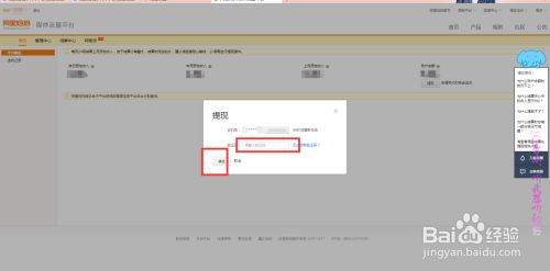 弹出的提现提示框中,显示了可提现金额,输入需要提现的金额和正确的验证码,点击确定。