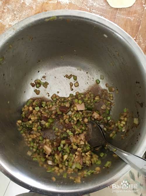 将肉丁、攥好的西葫芦丁和拌好的葱搅拌均匀,注意不要搅拌过度,以免西葫芦出水。再加入适量食用油,让馅料被食油均匀包裹。最后一步再加一勺盐,不用加太多,因为肉里的盐分已经很多了。(拌好后的馅忘记拍照了,马上包完了想起了)