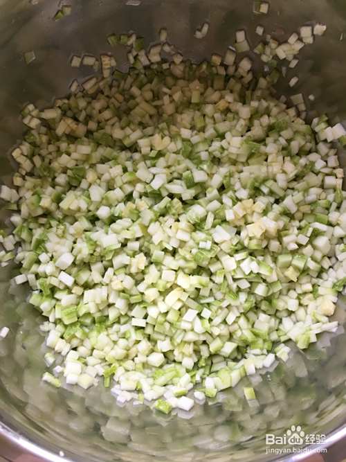西葫芦切成如图大小的丁,加一勺半盐。为的是把西葫芦里的水分去一下