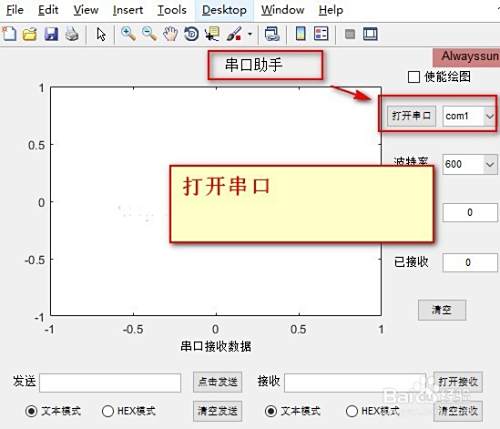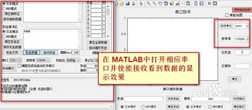 5.选择一个串口助手发送数据 在 MATLAB中打开相应串口并使能接收看到数据的显示效果