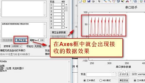 6.同时在MATLAB中点击使能绘图 在Axes框中就会出现接收的数据效果如下